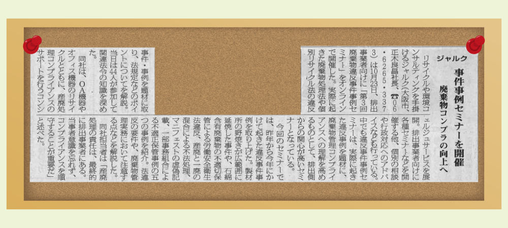 ジャルクの事件事例セミナーが循環経済新聞に掲載されました!
