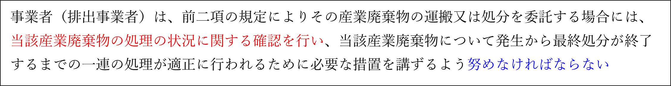 赤字の部分2010年の法改正で追加され、現地確認を行うことが排出事業者の責任とされました。