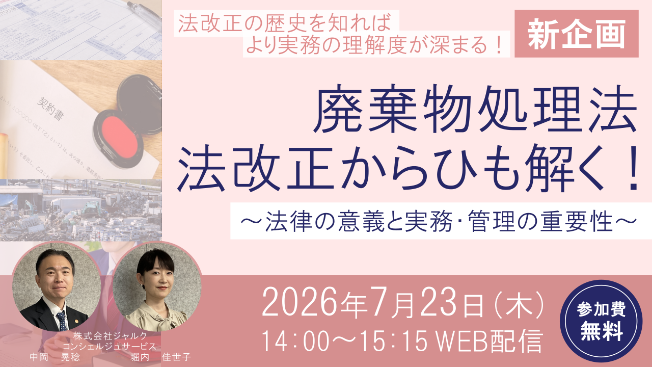 ◇新企画◇廃棄物処理法 法改正からひも解く! ~法律の意義と実務・管理の重要性~ -